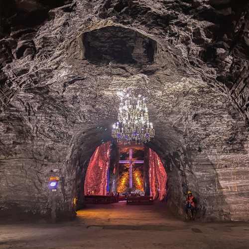 Descubre la impresionante Catedral de Sal de Zipaquirá, una maravilla subterránea esculpida en sal que te sorprenderá en cada recorrido. Disfruta de un paseo por el encantador pueblo y de un almuerzo típico en la zona, para luego vivir una tarde inolvidable en el espectacular restaurante temático Andrés Carne de Res, un lugar icónico donde la gastronomía, la música y la cultura colombiana se combinan en un ambiente lleno de color, alegría y energía.